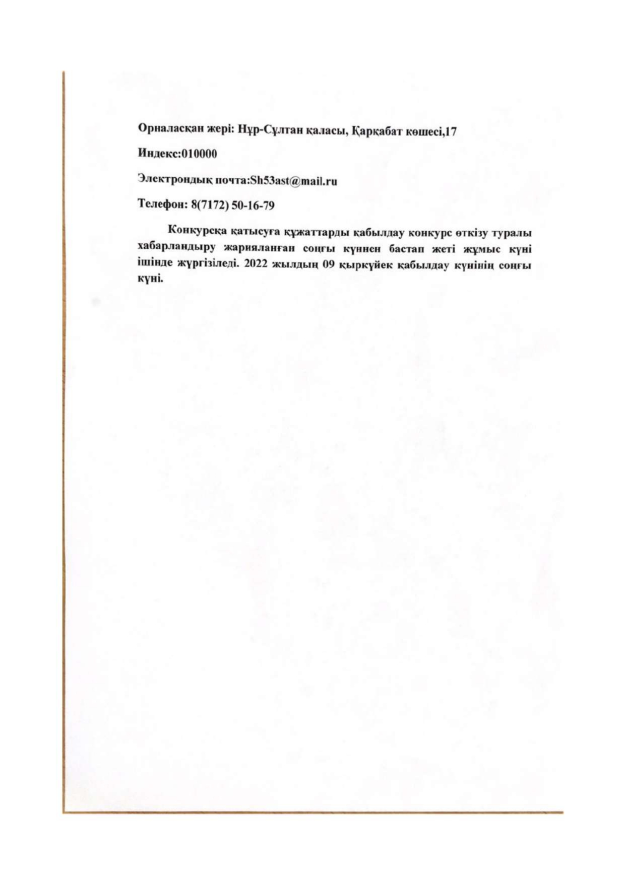 «Бауыржан Момышұлы атындағы №53 мектеп-лицей» КММ бос лауазымдық орнына орналасуға және (немесе) уақытша бос лауазымдық орынға конкурс өткізу туралы. 31.08.2022