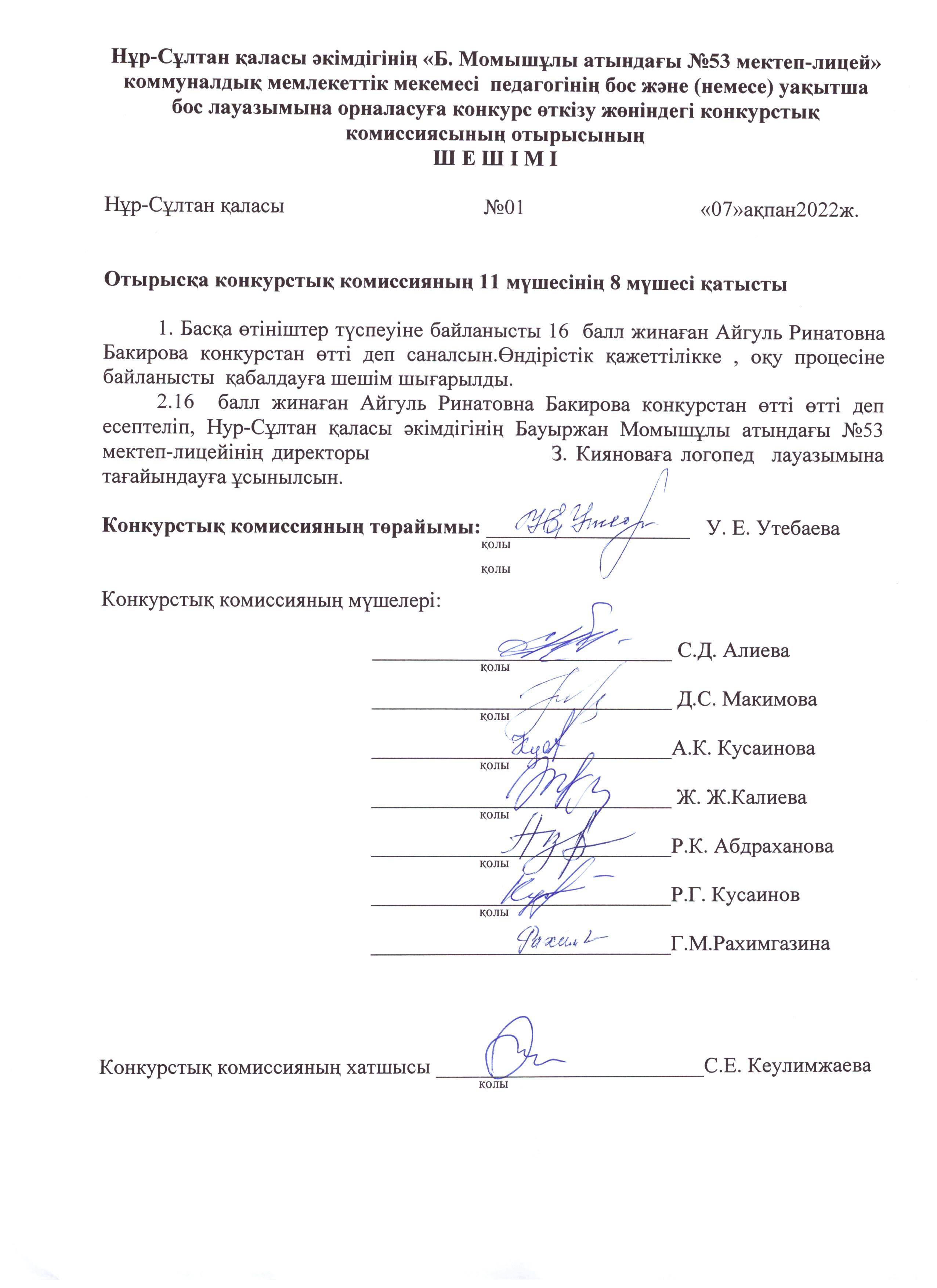 Бос және уақытша бос лауазымға оналасуға конкурс өткізу жөніндегі конкурстық комиссияның отырысының шешімі