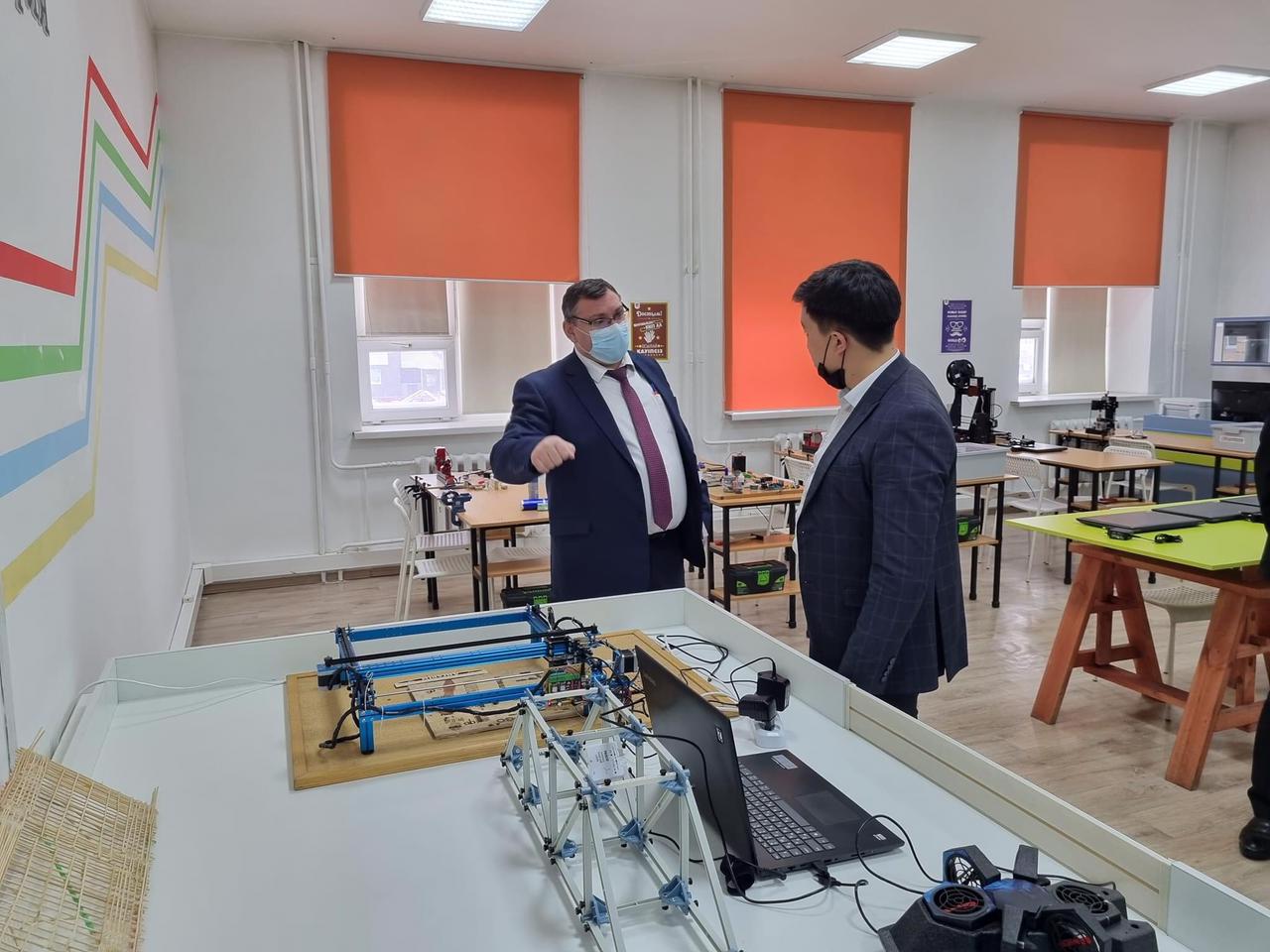 Бүгін Нұр-Сұлтан қаласы Білім беруді жаңғырту орталығының инновация және ынтымақтастық бөлімінің басшысы М.К.Шайжанов, әдіскерлер: Р.А. Шаяханова, В.А. Яковлев келіп, мектебіміздегі жүзеге асырылып жатқан инновациялық жобалар жұмыстарына әдістемелік көмек көрсетіп, бағыт-бағдар берді. Жоба жетекшілерімен кездесіп, туындаған қиындықтардың шешу жолдарын айтты. Қазіргі күнде мектебімізде «SHARE», «ИНТЕЛЛЕКТУМ», халықаралық «GLOBAL SCHOLARS», «STEM-оқыту», «Бағдарламалау негіздері», «OKОO онлайн бағдарламалау мектебі», КАДЕТ, оқулықтарды сынақтан өткізу республикалық жобасы іске асырылып жүр.